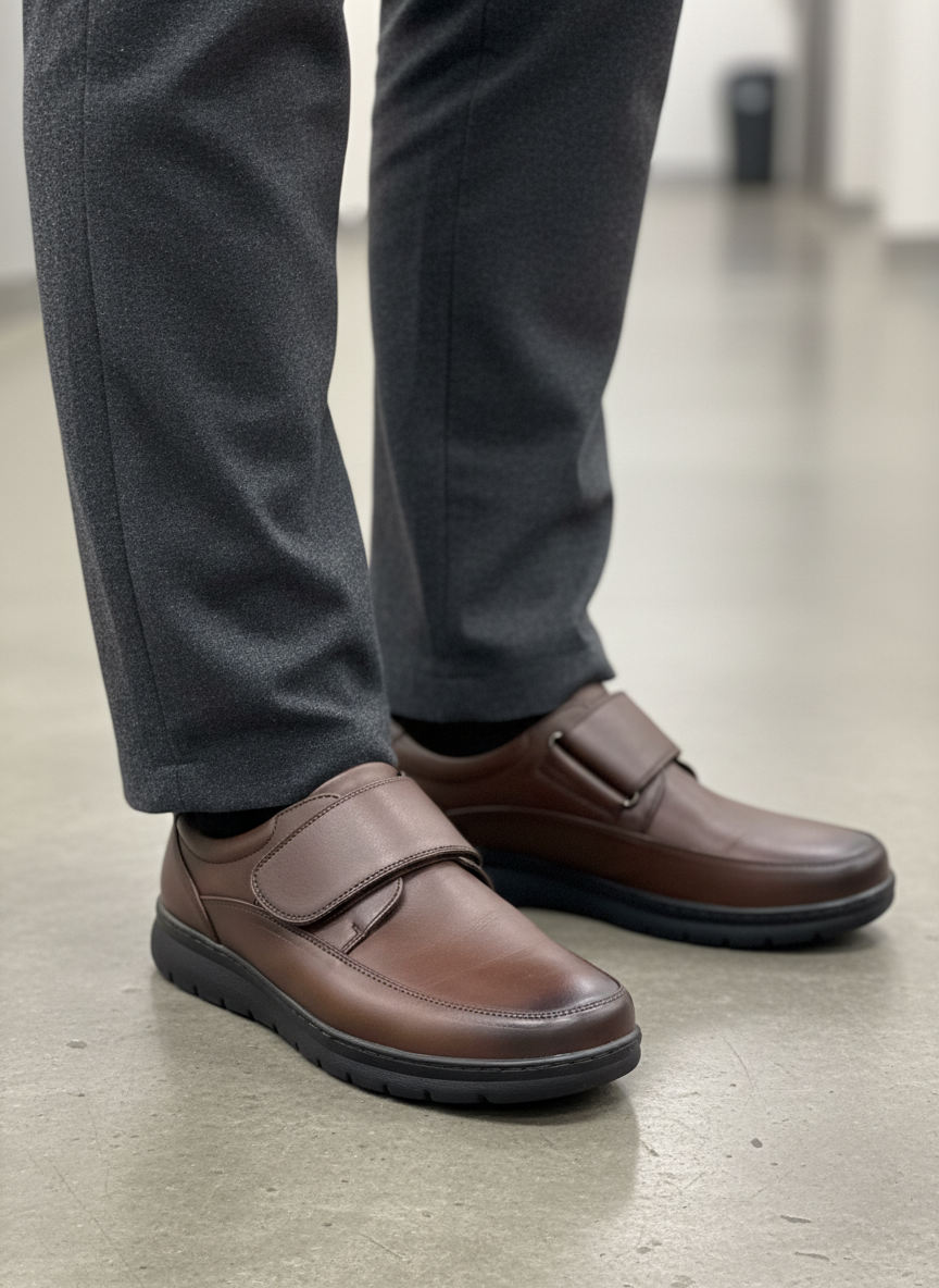 Chaussures Paris Coloris marron 1 velcro Pointure 40 à 46 Confort et praticité réunis dans ces chaussures Paris au coloris marron intemporel. Dotées d'une fermeture velcro ajustable, elles s'enfilent sans effort et s'adaptent parfaitement à votre morphologie. Disponibles de la pointure 40 à 46, elles conviennent à tous les pieds. Idéales pour le quotidien, ces chaussures allient élégance discrète et facilité d'accès, essentielles pour un homme qui refuse de compromis entre style et confort. À 41€, un investissement judicieux pour vos sorties en toute confiance.