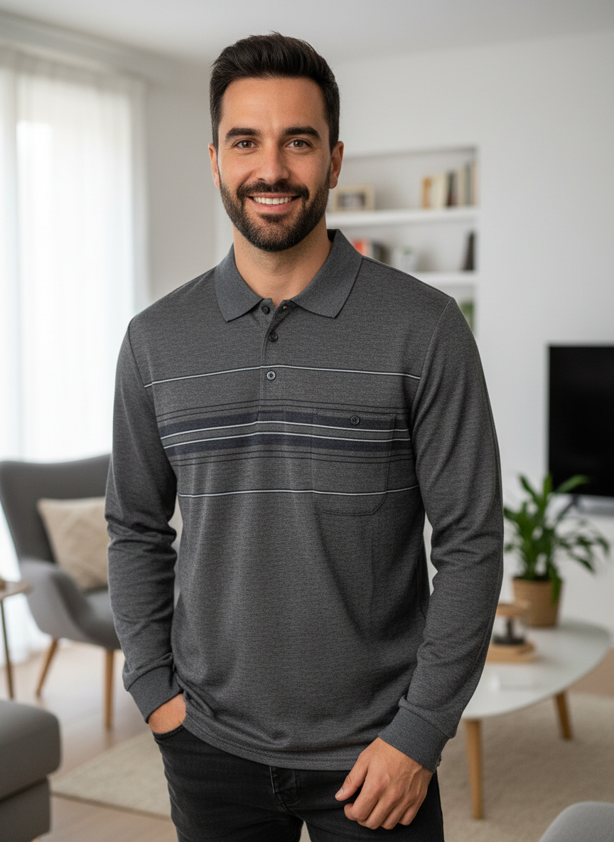 Découvrez notre polo manches longues Jack, la pièce incontournable pour un style décontracté et raffiné. Disponible en trois coloris intemporels – gris, marine et vert – ce polo fantaisie s'adapte à tous les goûts et toutes les occasions. Coupe confortable du S au 4XL, il offre une liberté de mouvement idéale pour le quotidien. Parfait pour les hommes qui recherchent l'élégance sans compromis sur le confort.