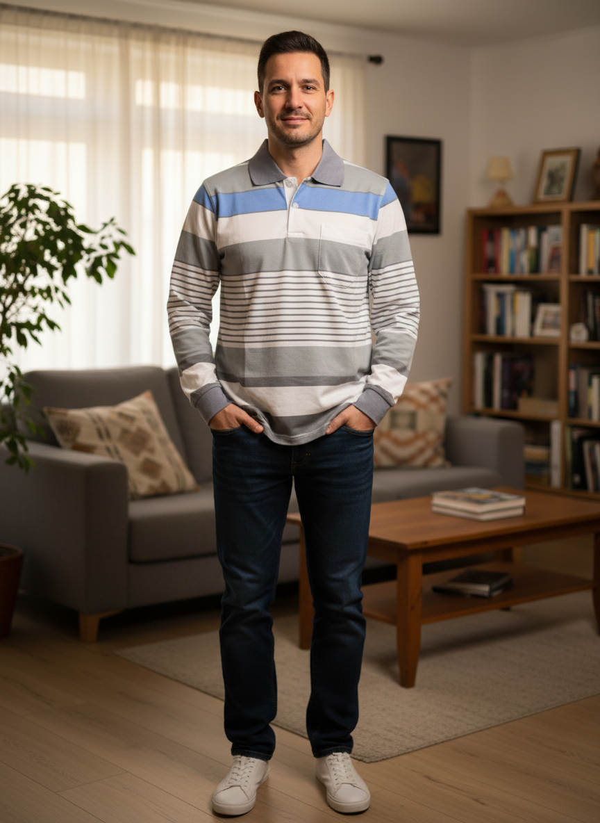 Polo intemporel en coton-polyester mélangé, conçu pour allier confort et élégance au quotidien. Ses manches longues offrent une couverture optimale, tandis que le motif fantaisie ajoute une touche de caractère à votre garde-robe. Parfait pour les occasions décontractées ou professionnelles, ce basique polyvalent s'adapte à tous les styles. À cette qualité, à ce prix, c'est une occasion à ne pas manquer.