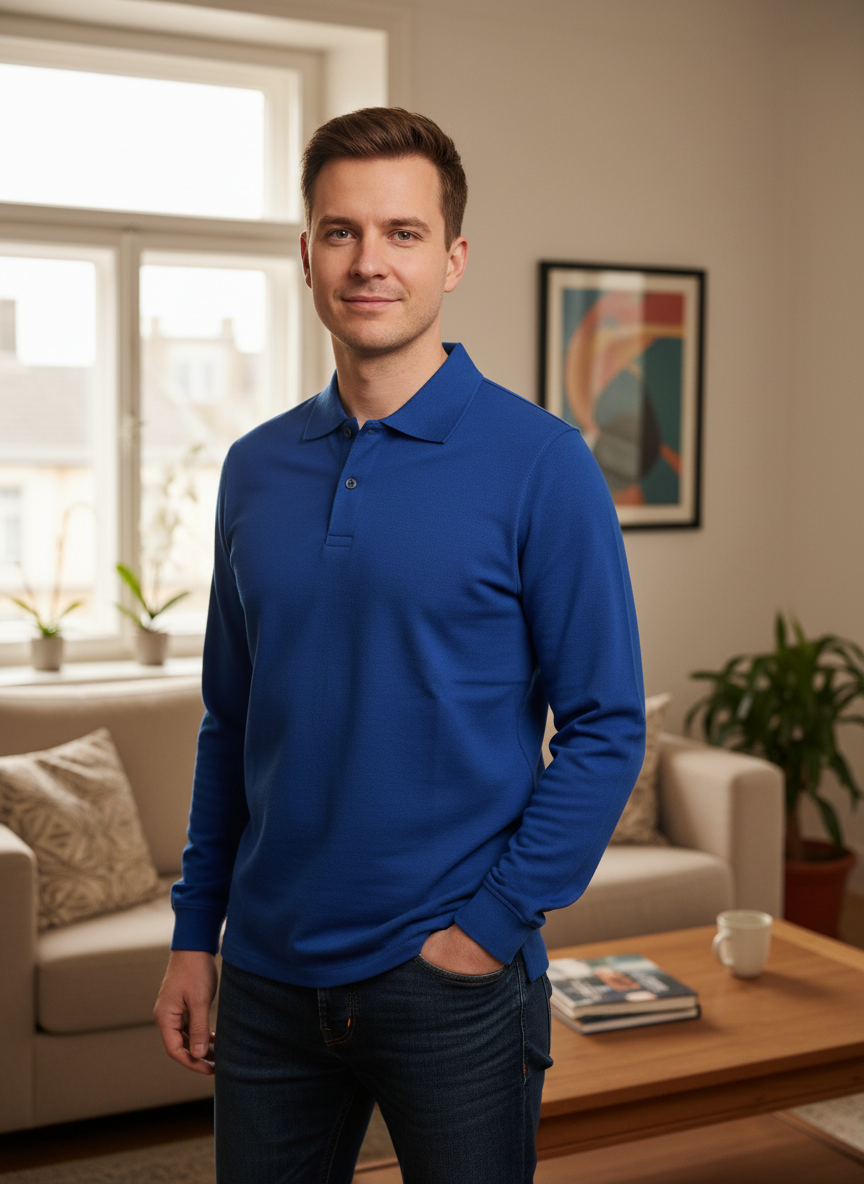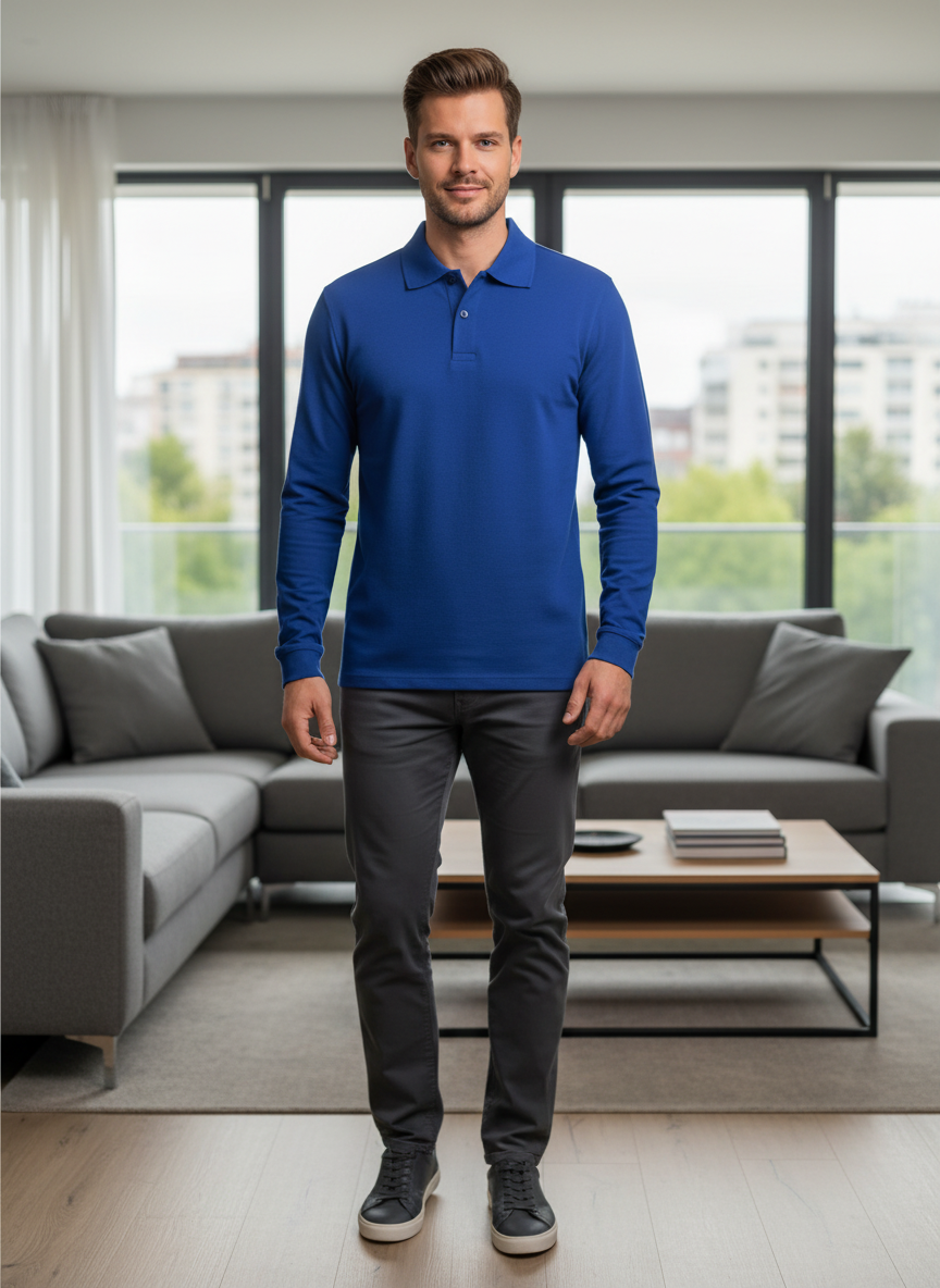Polo intemporel en coton-polyester, manches longues, coloris bleu roi uni. Coupe classique et confortable, idéal pour le quotidien ou le travail. Matière résistante et facile d'entretien. À saisir à ce prix exceptionnel.